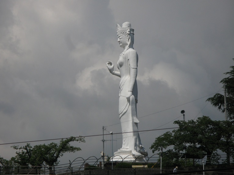 ホームから見た韮崎・平和観音像。1961年というと東京オリンピックの前ですが「市民の平和や登山者らの安全を祈願して」建立されたとのこと。登山者を視野にいれているというのを今回初めて知りました。なお直接関係ありませんが、かつて県立韮崎高校は全国的に知られたサッカーの名門校で、甲府生まれの中田英寿が(進学校・甲府一高ではなく)韮崎高校に在学したのは1992〜95年です。このときすでにイタリア・セリエAに移籍する可能性を考えイタリア語を勉強していたといいますからさすがです。
