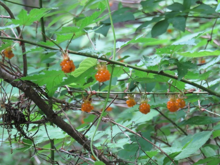 そして、桑の実の味見休憩となったのは当然のなりゆきです。以前、昇仙峡の裏山で廃村となったところに真っ黒に熟した桑の実があったことを思い出します。ここでも持ち主不明らしいクワの大木が道際に何本か並んで熟した実が道に落ちているのですから(勝手ながら、ありがたく)試食させていただきました。