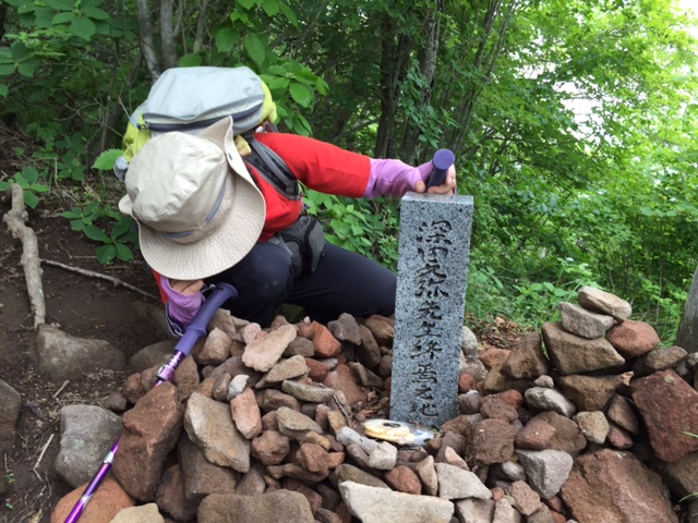 12時05分に稜線に出て、深田久弥終焉の碑のところで5分休憩、山頂には12時35分に着きました。