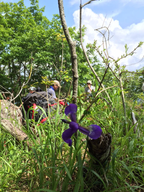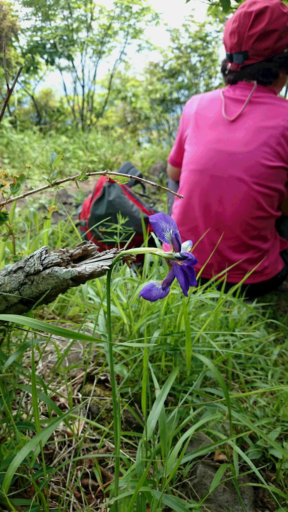 金ヶ岳山頂にアヤメ。向きがいささか奇妙。