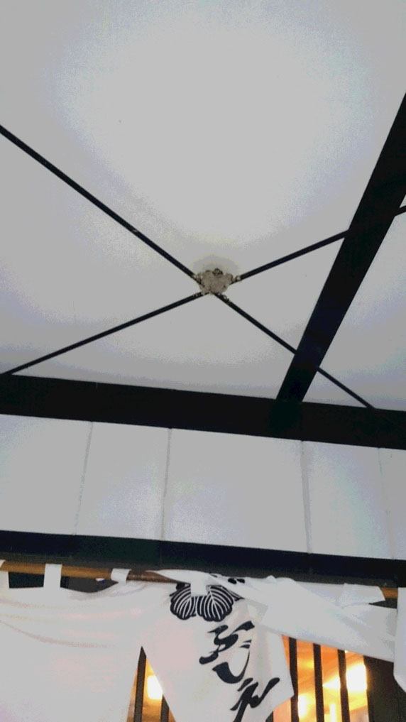 韮崎駅近くのうどん屋 ふじえの入口の天井に、
