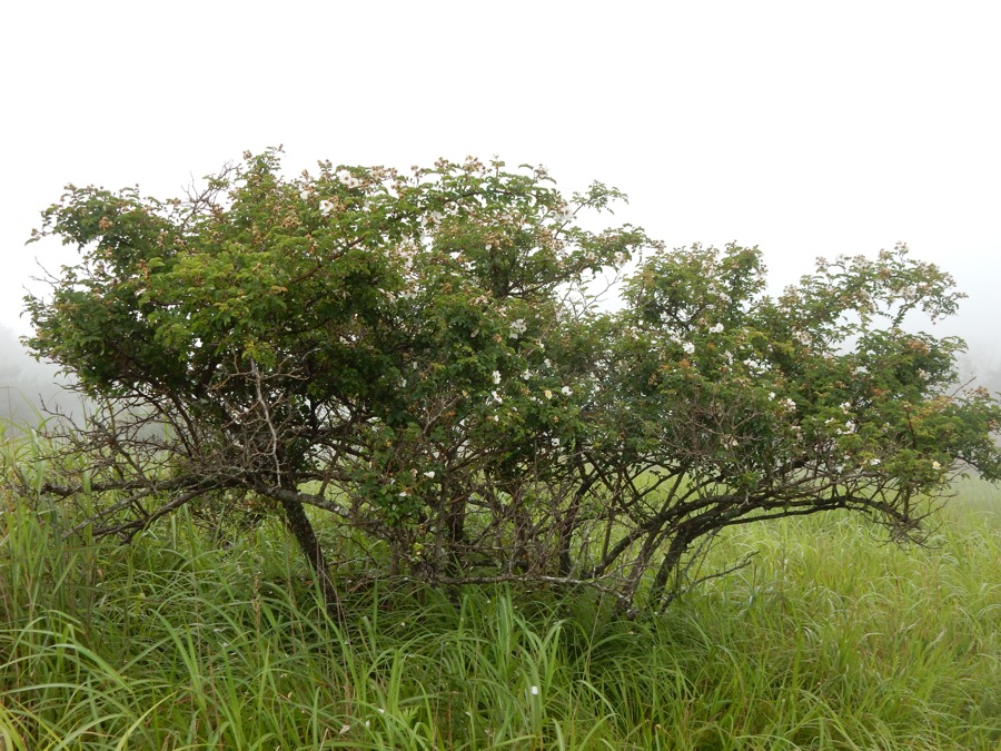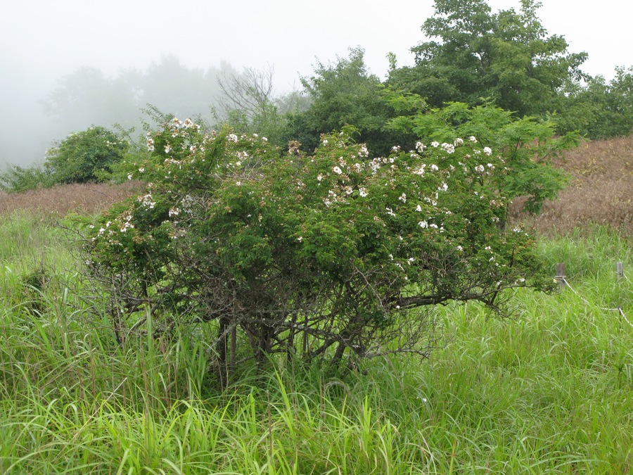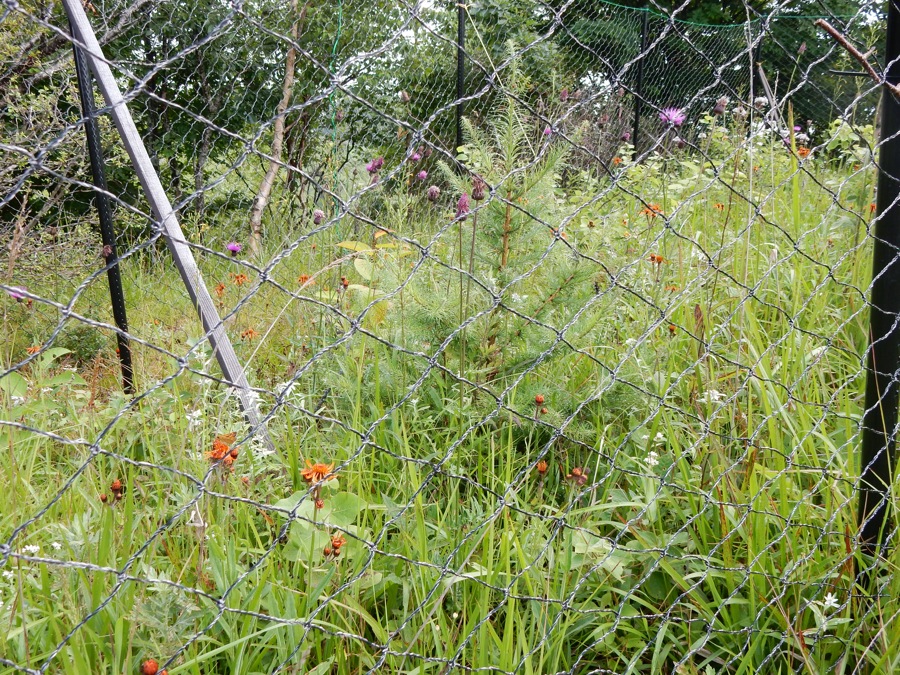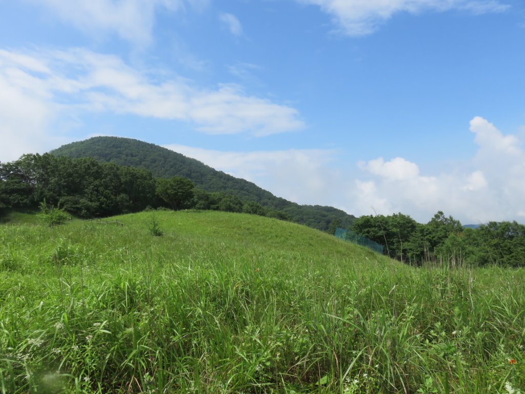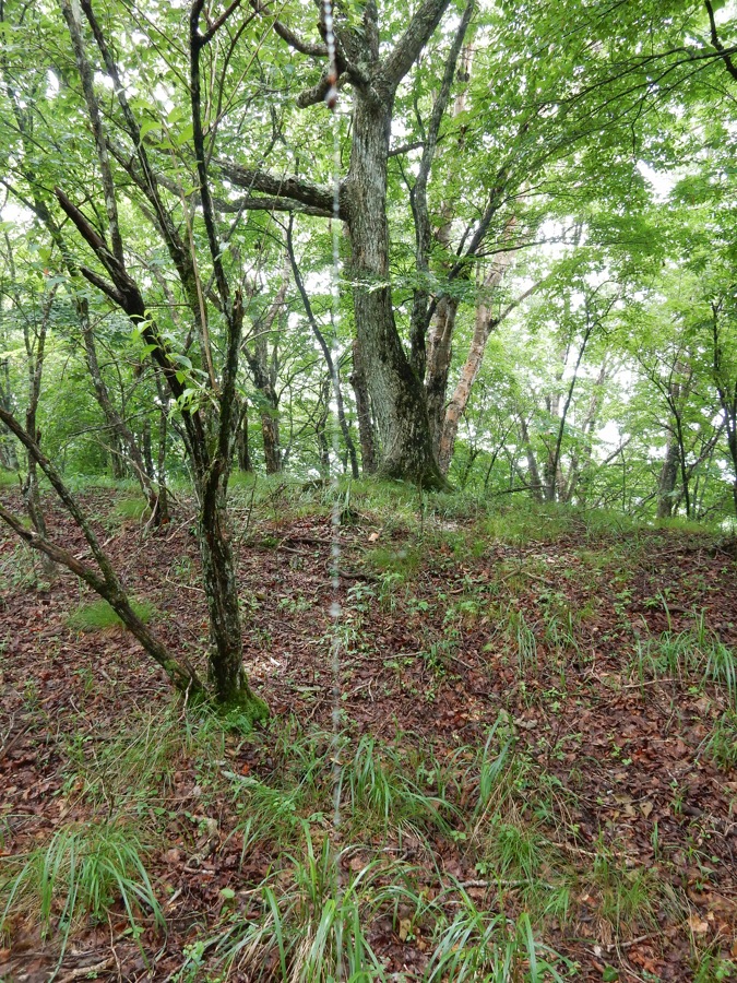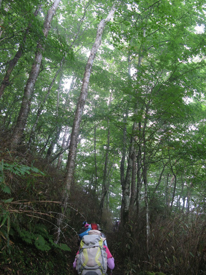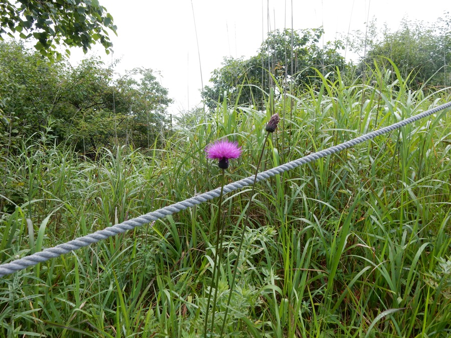 *ところが数年前に大谷ヶ丸中腹のレンゲショウマが突然姿を消しました。そして19回目のこの日には、青々とした草原と、登山道を仕切る確固たるロープ、シカを寄せ付けないという柵囲い……と、大きく様変わりしていました。参加者の中には2000年の夏に有無をいわさず連れてこられた人も何人かいたので、15年間のこの稜線のドラマをかみしめる気分が濃厚でもありました。