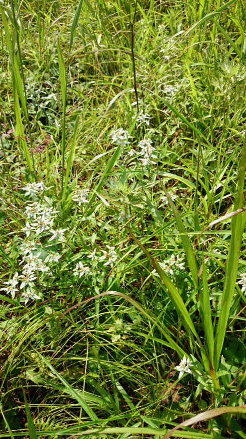*大菩薩峠から南に下る稜線は、黒岳の山頂まで、ほとんど花は期待できません。ササが主役という感じです。ところが黒岳から湯ノ沢峠へと下る斜面から花畑が始まって、大蔵高丸〜ハマイバ丸〜大谷ヶ丸の北斜面まで、大小の花畑がササと勢力争いをしつつ、少しずつ転調しながら続くのです。小さな箱庭が次々に現れる……というか、芝居が一幕ごとにドラマチックに展開していくというかたちでは首都圏有数の花の道だと思いました。