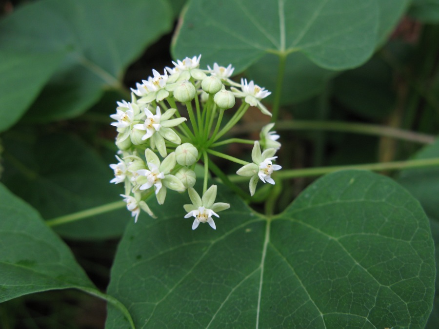 じつはこのイケマ、初めて見たような気がして何枚も撮っていました。こんな特徴的な葉と花だからネットのどかに写真があるはずと信じて小一時間探していたら見つかりました。アサギマダラの幼虫に食われた痕跡を見たことがないという一文もありました。