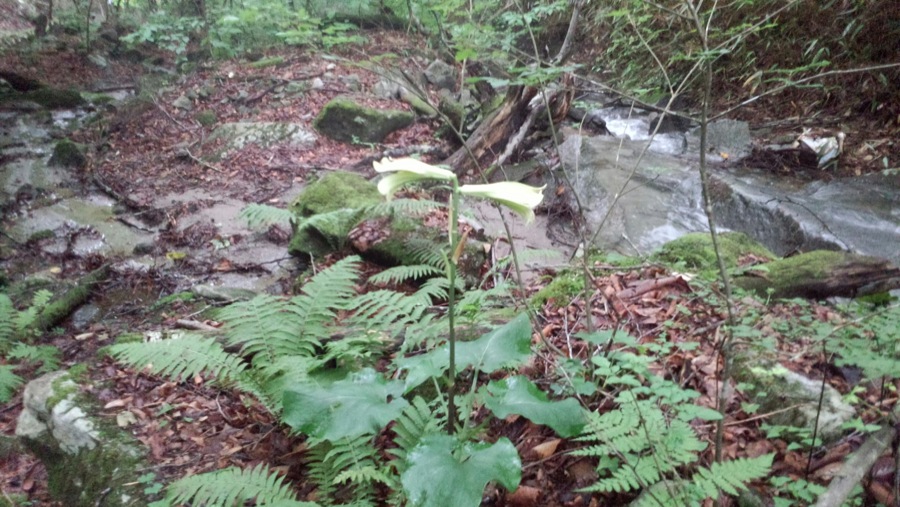 米背負峠から下ると、沢筋に出るまでに10本程度のレンゲショウマを見ることができたのですが、もちろん1本もありません。