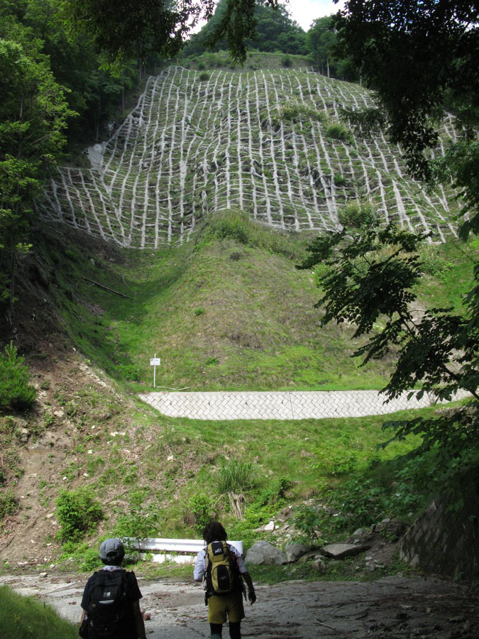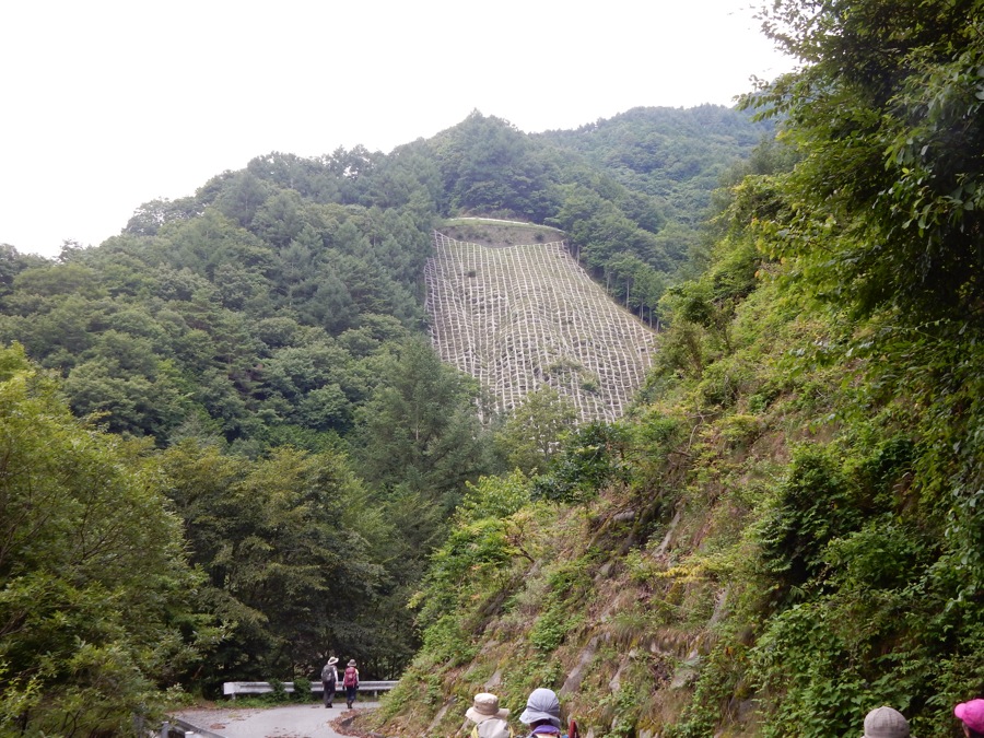 山肌の補強が目立つ山でした。複合的な原因で、少しずつ山が崩れ始めている様に感じました。