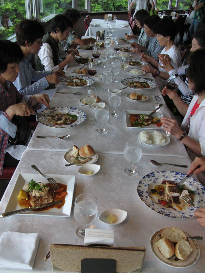 山の帰りには何を食べてもおいしいのですが、1,500円〜2,000円のメニューがあれば、プチ贅沢も考えます。ぶどうの丘のレストランでの楽しい食事。