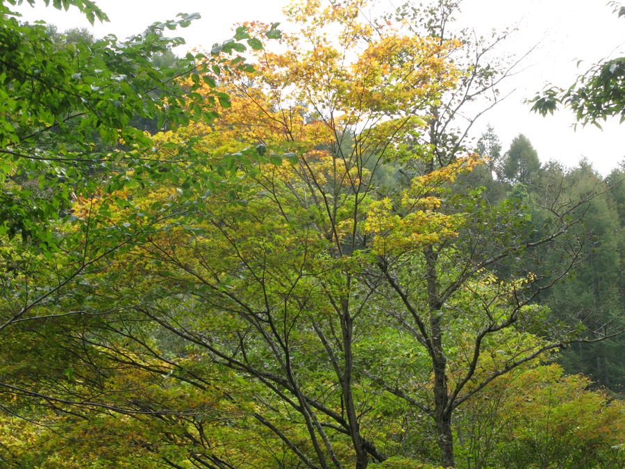 カラマツはこのあたりでも黄金に輝くまでにはあと数日、あるいは1週間かかるのではないかという印象です。
