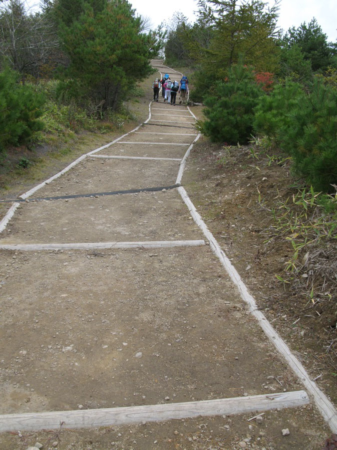 いつごろからか、登山道が観光道路になっていました。山岳観光路とでもいうのでしょうか、以前にも、この山では幼稚園児や小学生の遠足の列をほほえましく見ていた記憶があります。