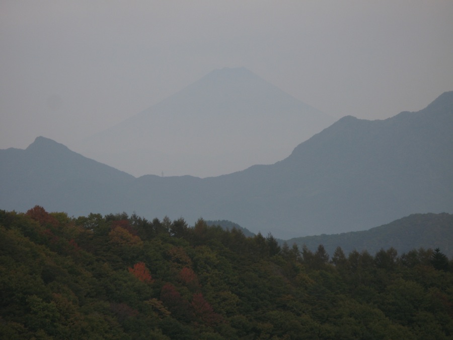 茅ヶ岳と金峰山の間にうっすらと富士山が見えました。その後クッキリと見えるチャンスがあるかと思ったのですが、写真をここに出しているわけですから、これがかろうじて写真に撮れたワンチャンスとなりました。