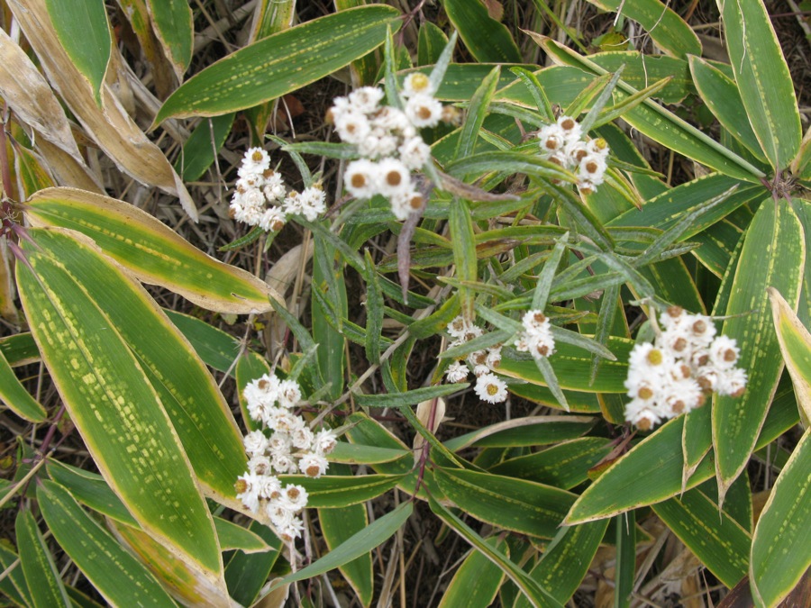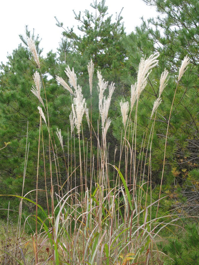ススキは漢字で薄と書き、別名は茅(萱)、尾花とのこと。ススキはまた芒とも書くようです。茅葺き屋根のカヤがこれだと聞くと首都圏の里山にいまなおカヤ場が残っているのを思い出します。図鑑には「一方に傾いた長い花序をもち」「花穂は赤っぽい色をしているが、種子には白い毛が生えて」などと書かれています。