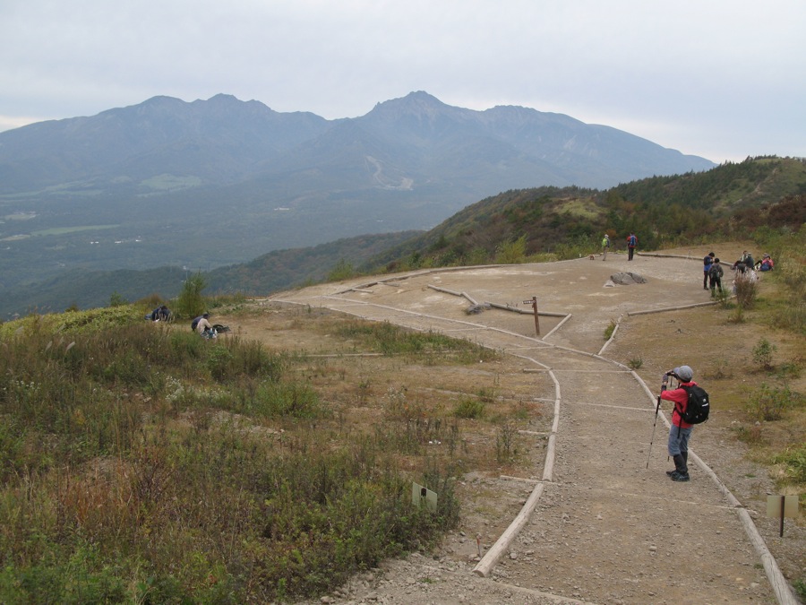 山頂直下に広場がありました。見えているのは八ヶ岳。登山口で見えたのとほぼ同じ山容です。