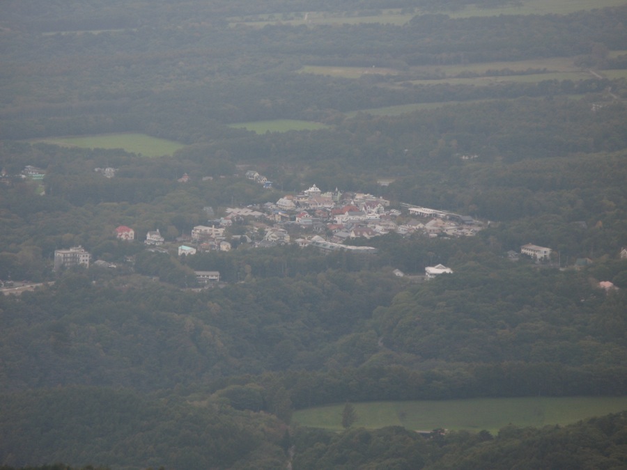 山頂から見下ろすと、清里にずいぶん賑やかな一角がありました。いわゆる清里高原の別荘街でしょうか。