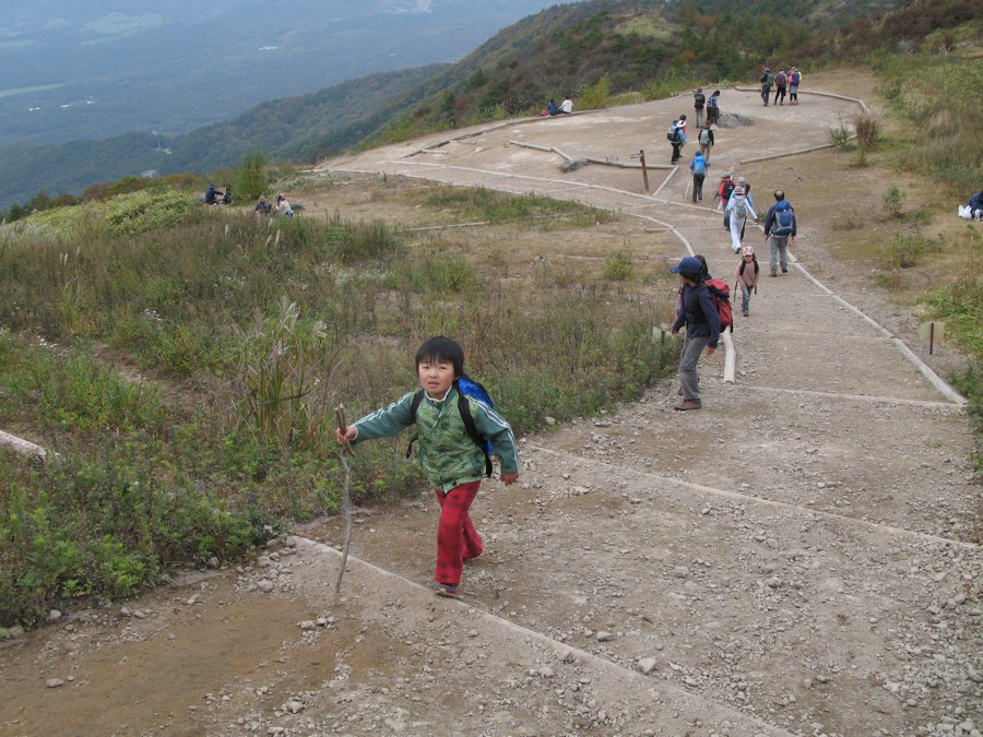 10人ぐらいのちびっ子チームがまるで子どもたちだけ……みたいな自由さで登頂し、私たちと同じ道を下ってきました。下りでは走っている子がいたりして、老人としてはヒヤヒヤしたり、ニコニコしたり。一部の人たちにとっては、児童公園の山という感じなのでしょう。