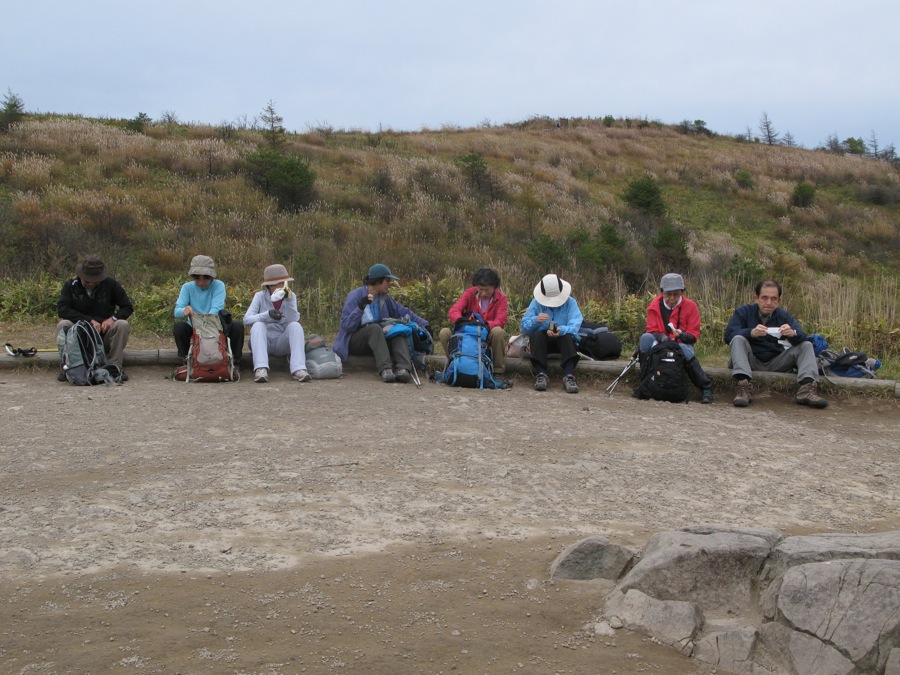 小さな山だと、どうしても一気登りという傾向になります。登頂した後、ようやく落ち着いて食事休憩。