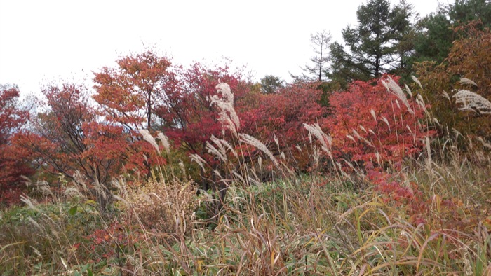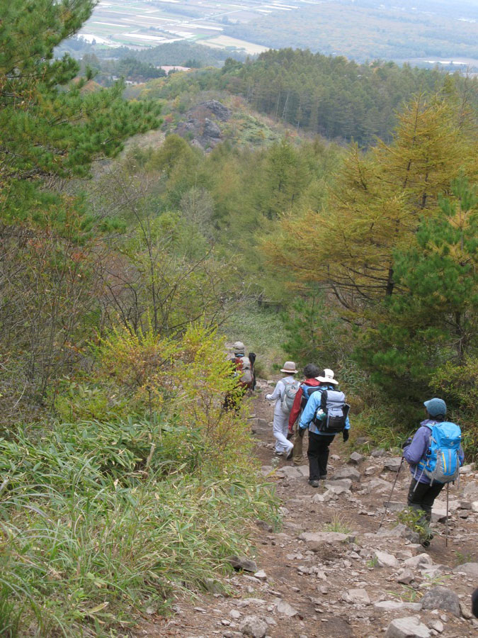 秋のピークという印象はここでは満点というわけにはいきませんでしたが、秋の空気が山の展望をかなえてくれました。じつは計画では、下ってから清里のカラマツの黄葉……というのがもうひとつの狙いなのです。
