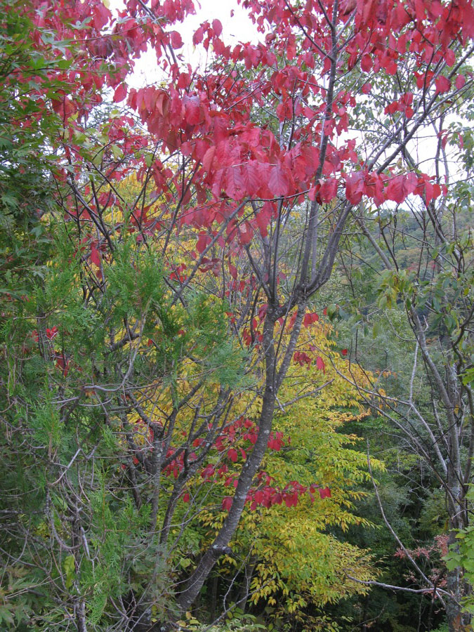 東沢橋のところにはこういう紅葉樹もありましたが、背後のカエデはまだ緑です。