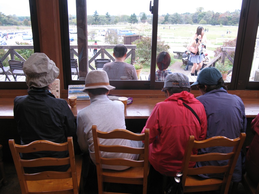 清泉寮ではジャージー牛のソフトクリームはもう時期はずれという感じで、ミルクコーヒーやホットミルクでひと休み。