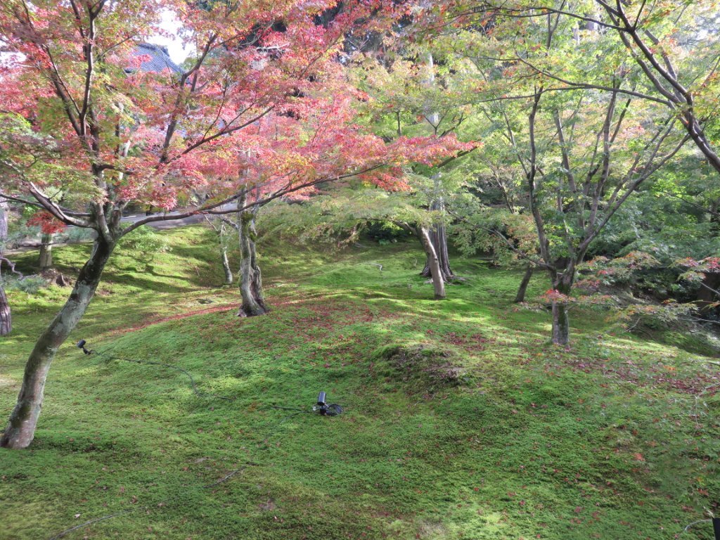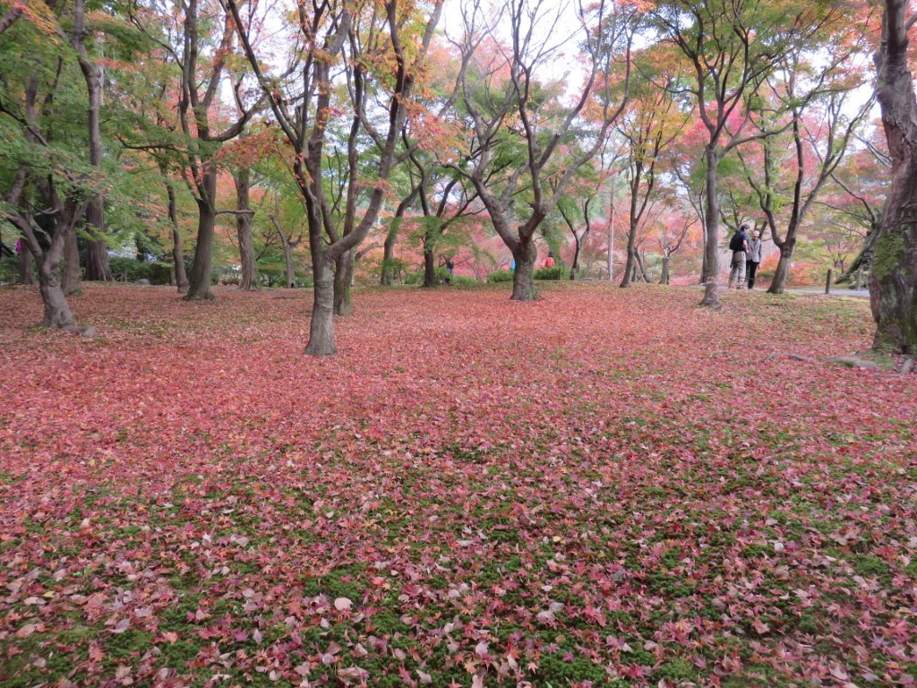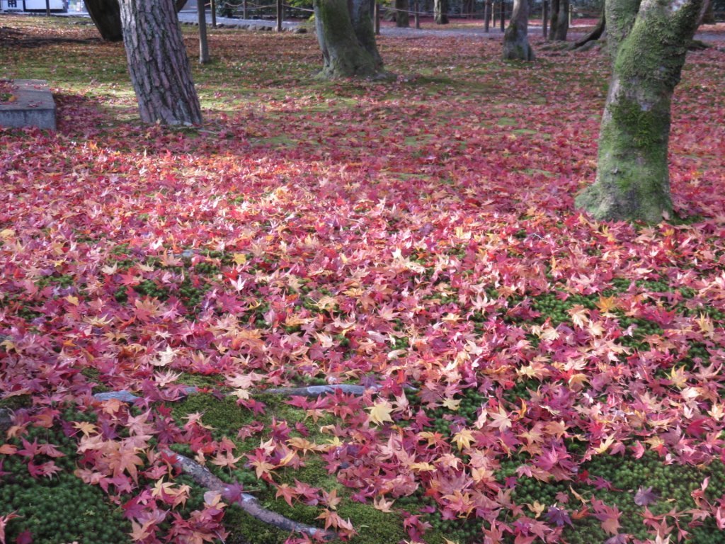 紅葉は 手入れされた緑の苔の絨毯に柔らかく敷き詰められ 緑とのコントラストが 見事だった。