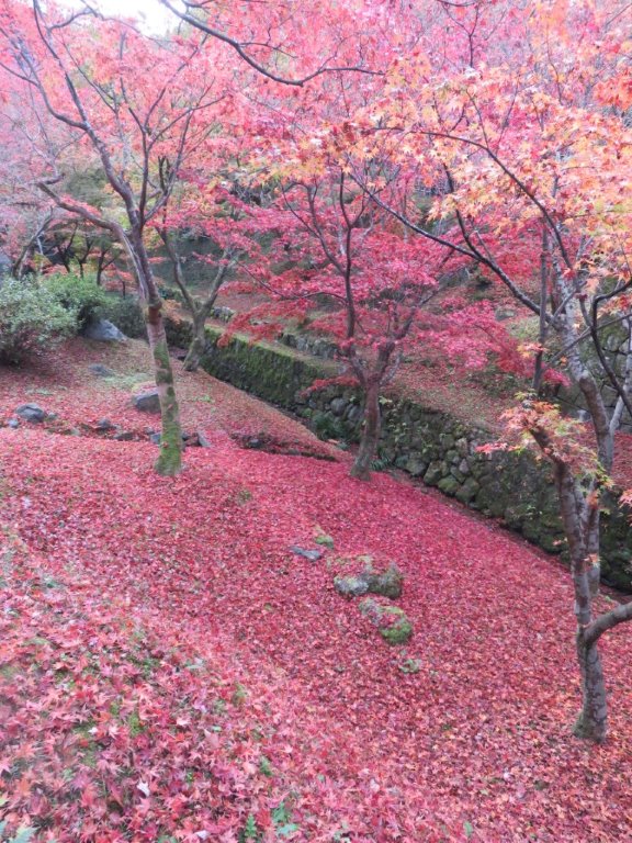 紅葉は 一部終わりかかっているのか 落ちている葉っぱも十分 味を添えていた。 只々 ため息。