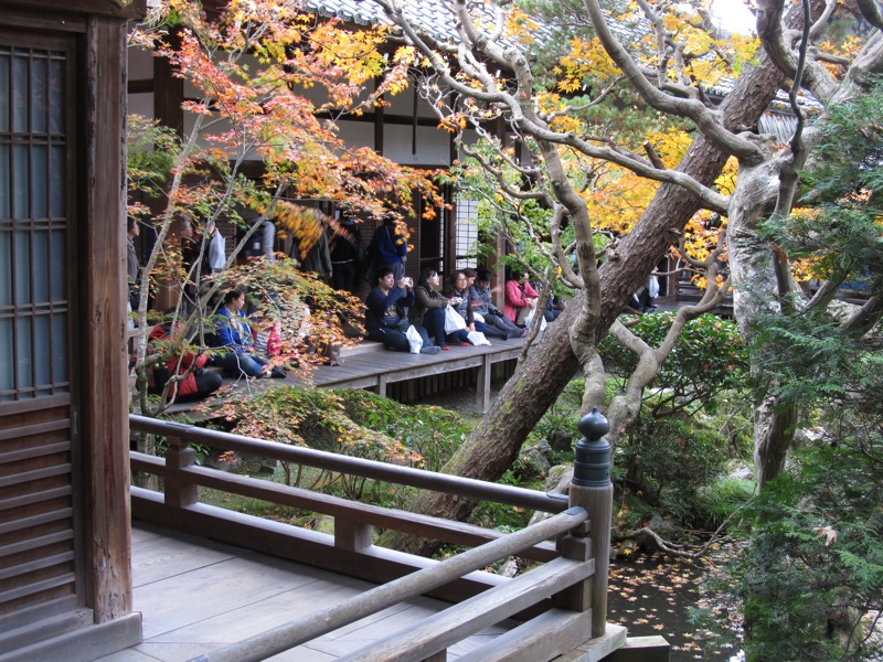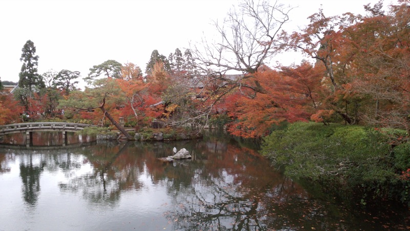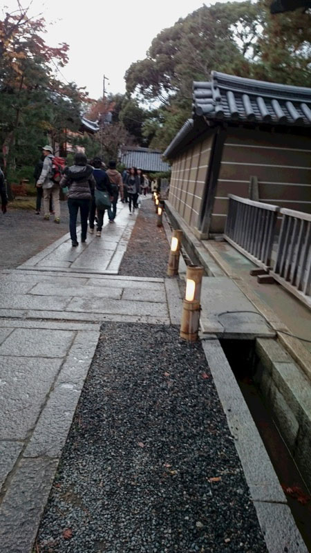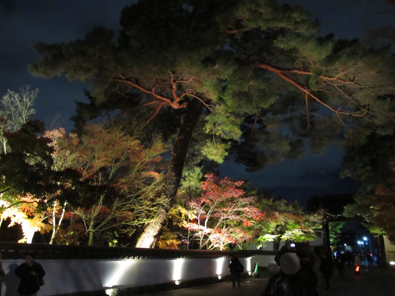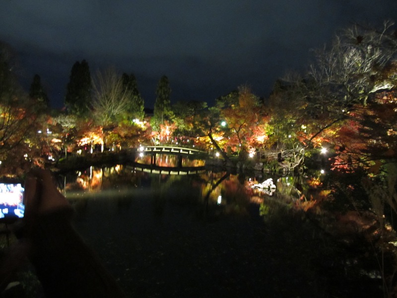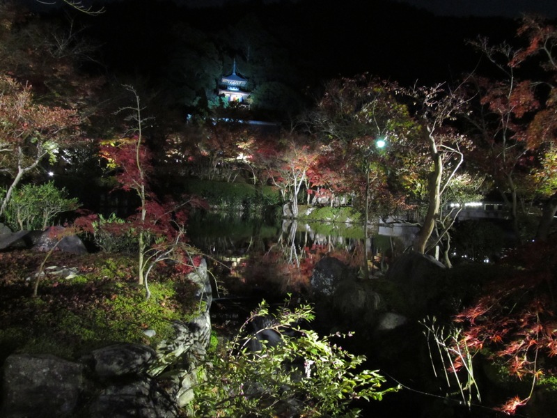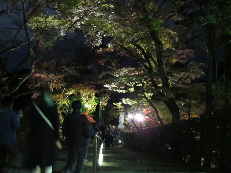私は往復とも夜行バスなので、京都滞在は16時間可能でした。新幹線で帰るみなさんと別れて再び永観堂へ。結論を先に言ってしまうと永観堂の見応えは建物の中から切れ切れに見る庭の風景でしたから、庭だけのライトアップではいくぶん単調、寺社のライトアップが昔の松明照明から現在のイルミネーションとの間の、どのあたりにあるのだろうか、などと考えてしまいました。