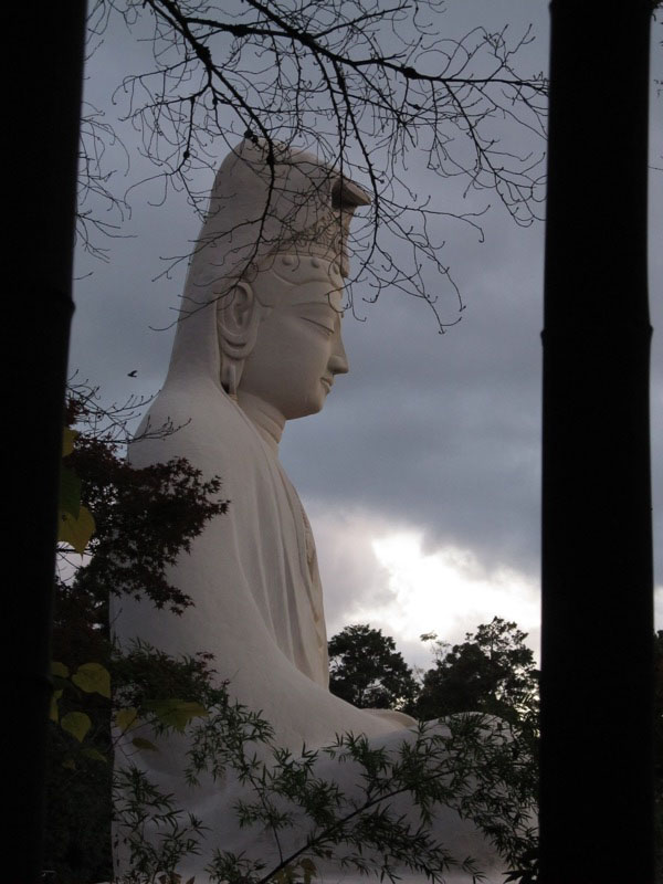 高台寺に隣接する高さ24mの霊山観音(りょうぜんかんのん)座像。竹林のところでその横顔が見えました。第二次世界大戦における全世界の戦没者を慰霊するため1955年に建立されたとか。ネットで見ると納骨施設のようです。