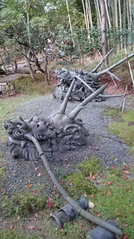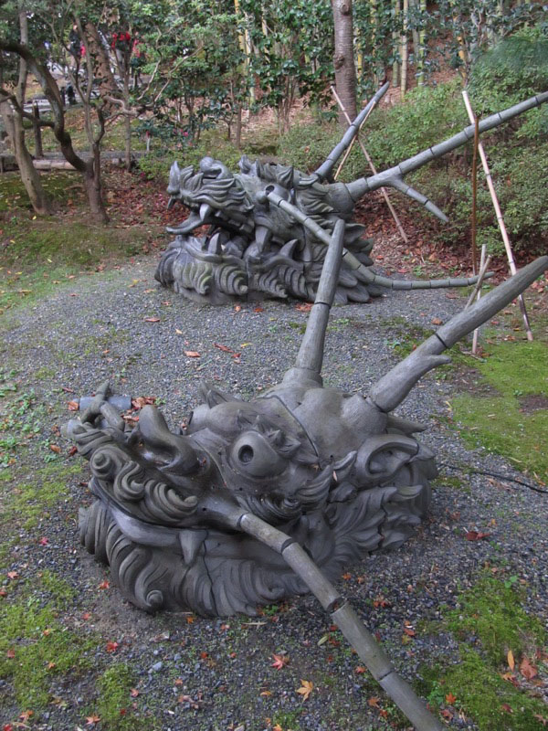 高台寺の基本モチーフのひとつに龍があるようで、臥龍池があり、臥龍廊、そして庭の片隅にこんな龍の置物が。
