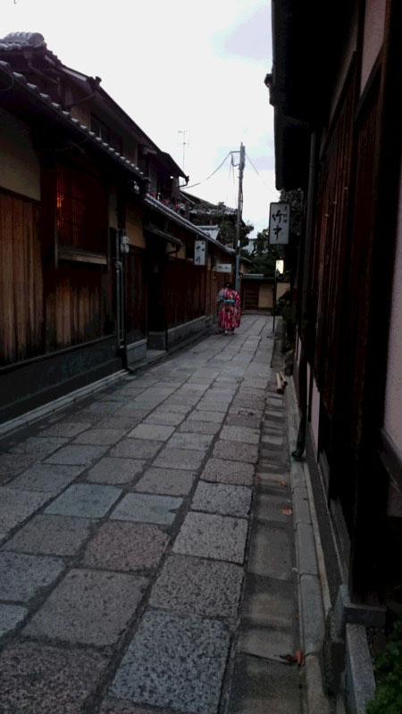 こんな小路がありました。その小路は石畳の京都らしい風情があって、思わず写真に……。