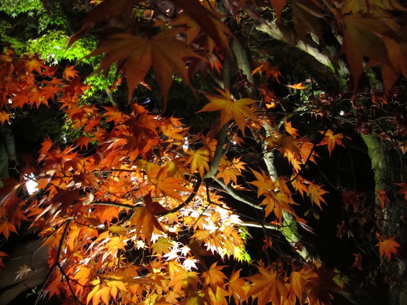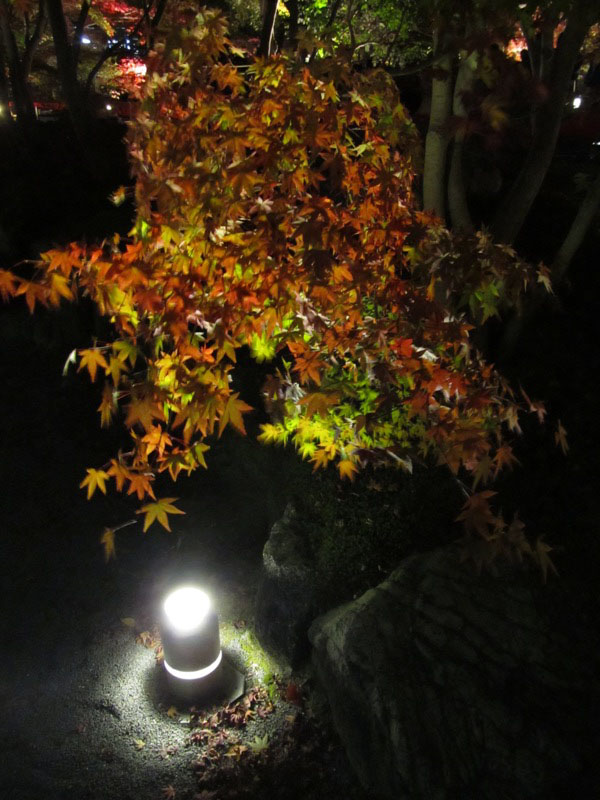 夜間だと、昼間物足りなかった紅葉の赤がどのように変化するのか。スポットライトによる表現はもちろん効果的だと感じます。
