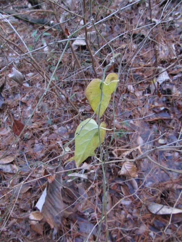 道端に枯れ残った葉がありました。自然薯(ヤマイモ)のようですがどうでしょうか。