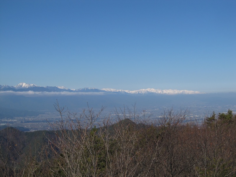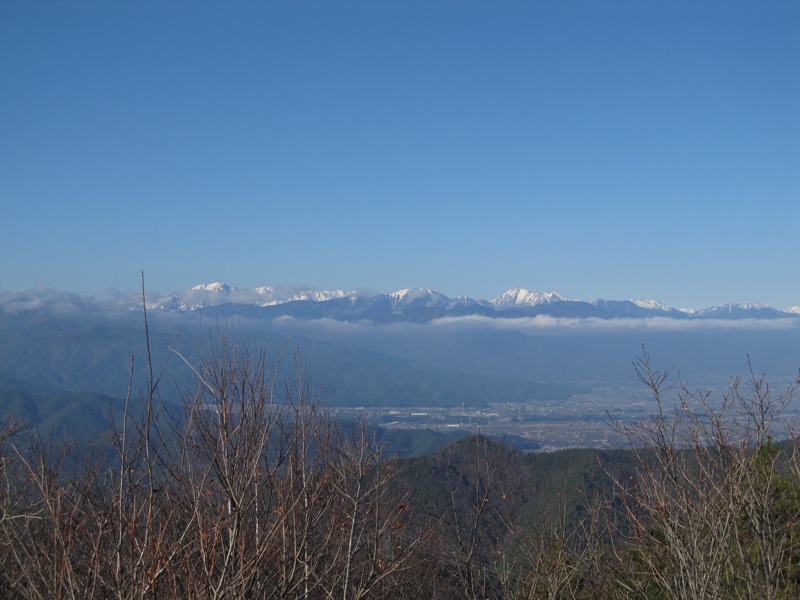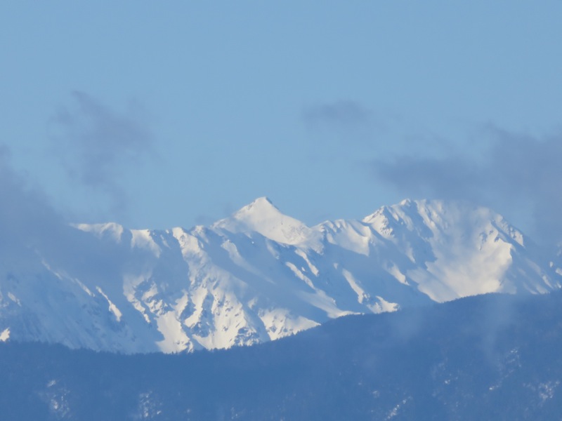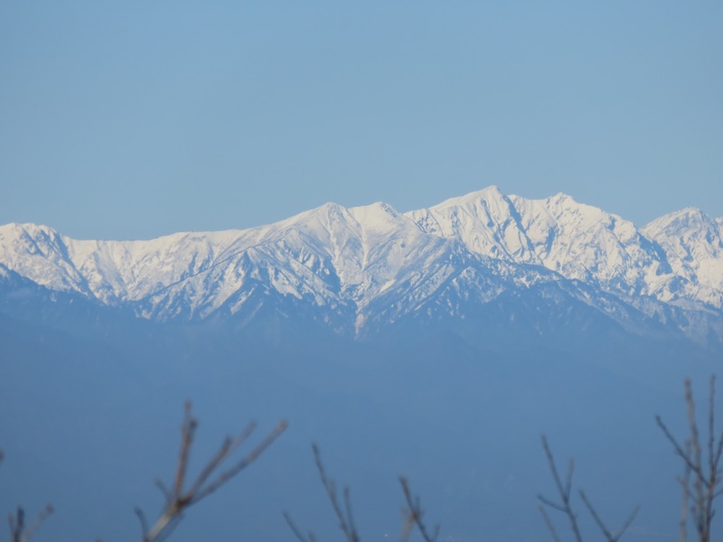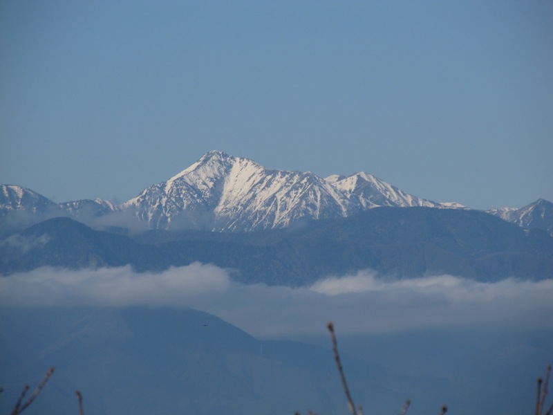 *冬なら「霧」と無縁かどうかはわかりませんが、北アルプスのこちら側は雪国ではないのです。太平洋岸の天候に属するので、北アルプスに雪を降らせた風は乾いて晴天をもたらします。「冬に晴天率の高い山」に属すると思うのです。極端にいえば、首都圏から富士山が見える日は、この山から北アルプスが見える可能性が高いのです。
