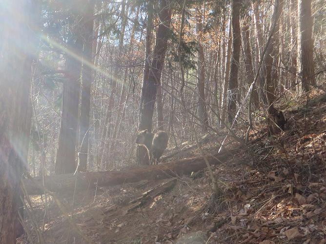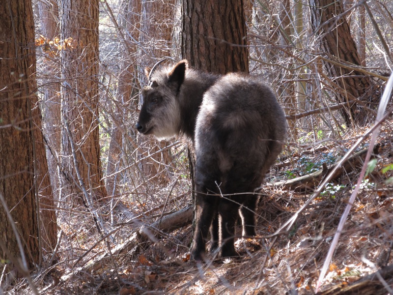小野の登山口が見えてきたところに、このカモシカがいました。感激ではありましたが、勘違い感が否めない出会いではありました。