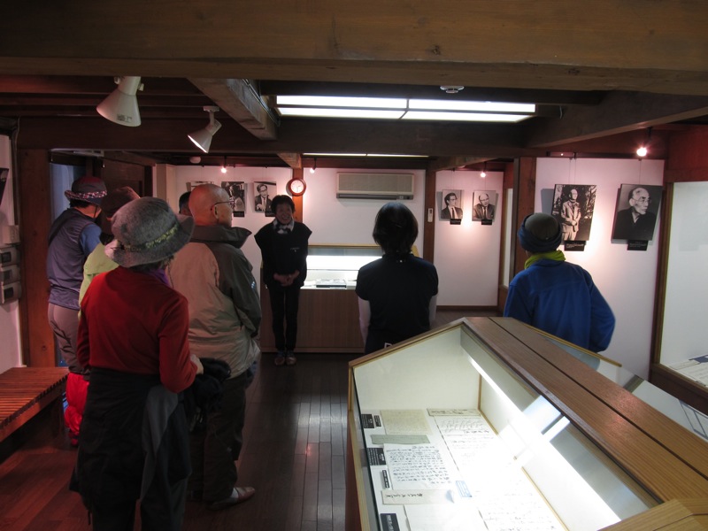 平成5年(1993)に庭園と土蔵が塩尻市に寄贈されて記念館となったとか。これはその土蔵2階の和室で、文学史に名を連ねる多くの作家が訪れているといいます。