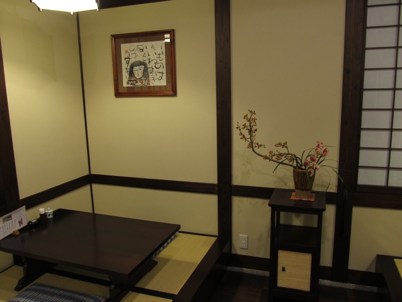 この店は混んでいることもあるそうですが、私はいつも貸切状態。かならず花が活けられています。