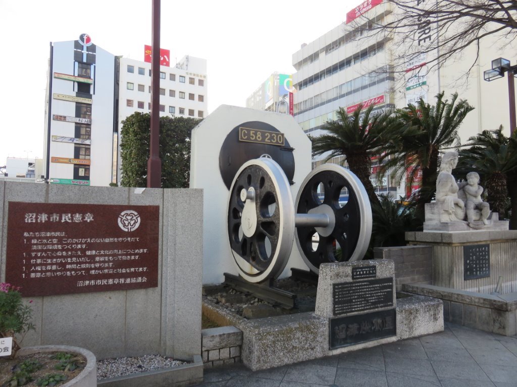 沼津駅南口駅前にあった沼津機関区の記念碑 その隣にあるのは 若山牧水かと思ったら 井上靖の記念碑。この一枚だけが デジカメ撮影。
