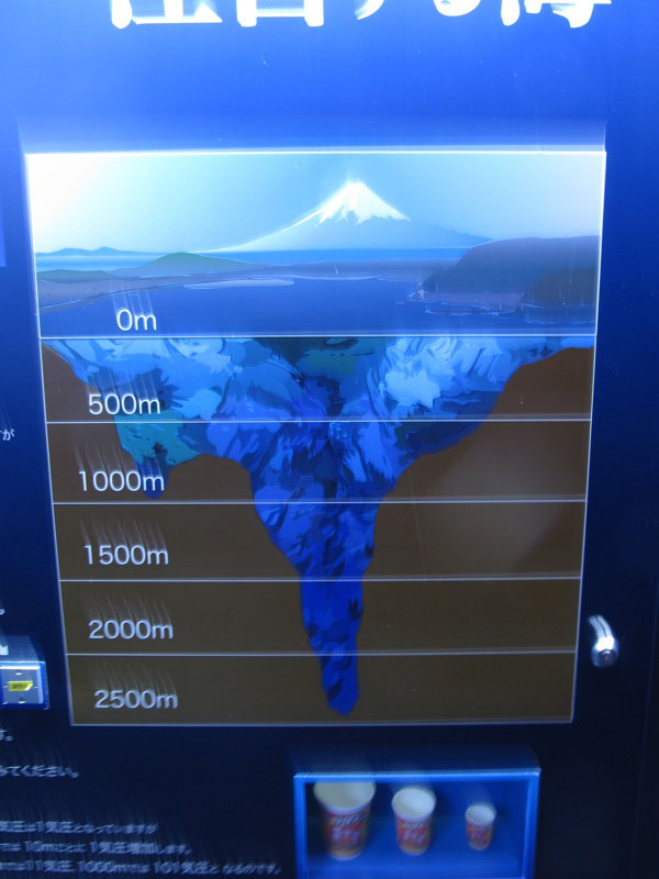 沼津では、まず沼津港へ。火曜日は休業の店が多いこともあって、結局無休の有名店・丸天へ。わたしはそれよりも行きたかった沼津深海水族館へ。入館料1,600円はシニア割引で1,500円になったものの、全員で入るにはちょっと高価かなという印象。シーラカンスに興味ある人ならすでに自分で来ているだろうし。でもこの図は象徴的でした。