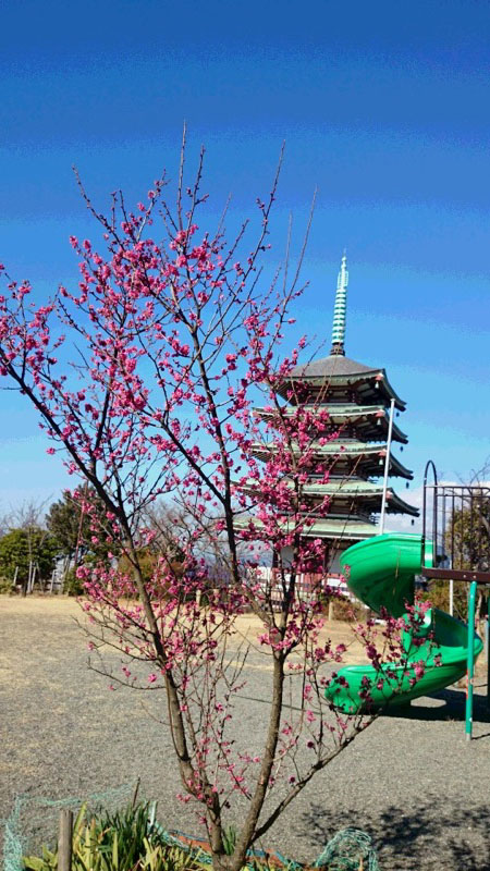 香貫山五重塔境内に咲いていた 紅梅。風は冷たかったけど 陽射しは明るく 梅のほのかな香りが爽やかだった。