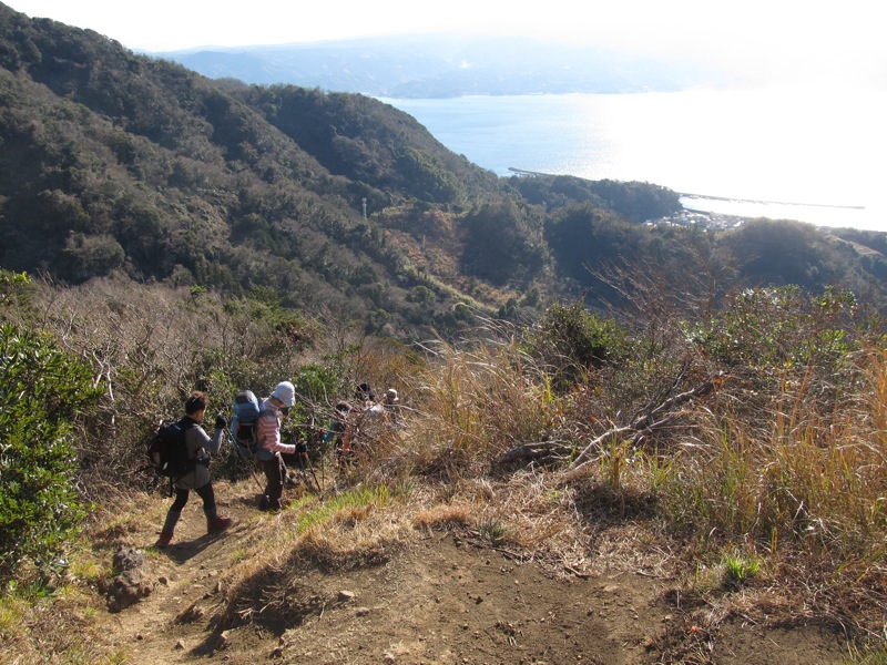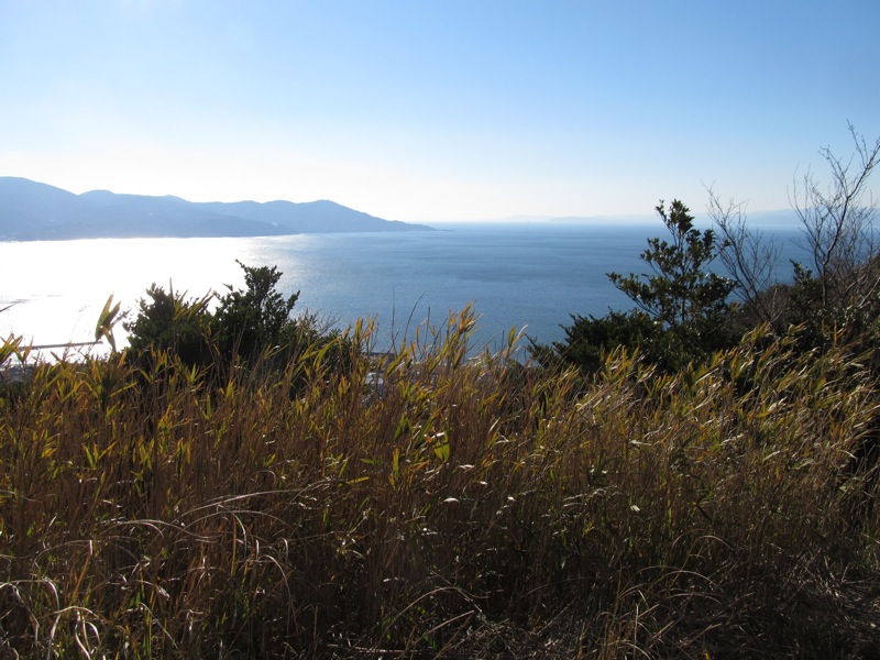 志下山の稜線は茅場風の明るい道なので、海が眼前に広がります。左から張り出しているのは伊豆半島の岬。手前に見える短い岬が大瀬崎。