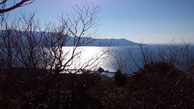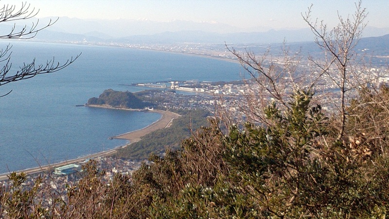 駿河湾の奥深く、伊豆半島の根元の部分が見えてきました。日本の民俗・民族学のスタート地点として知られる「内浦」の海です。「内浦・静浦」と書かれているガイド地図もありますが、静浦はこの入口の部分、14時16分の写真に写っているのが「静浦漁港」でした。この静浦の名が、沼津アルプスの本名「静浦山地」の由来のようです。