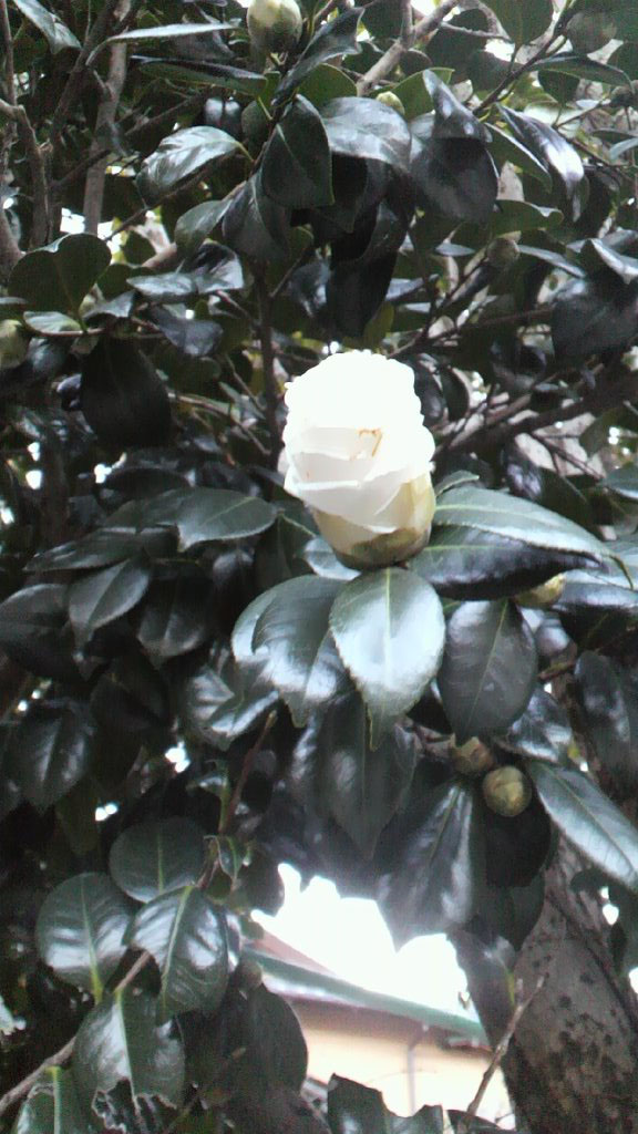 家の軒先を飾る 白い椿は とても新鮮だった。まだ香りは届かなかったが 気品があった。