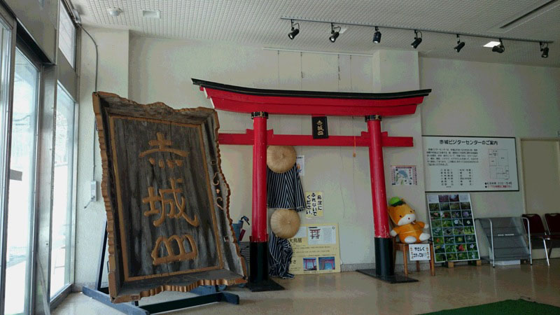 まあ、絵に描いたような美しい風景です。湖面と赤城神社が見えています。