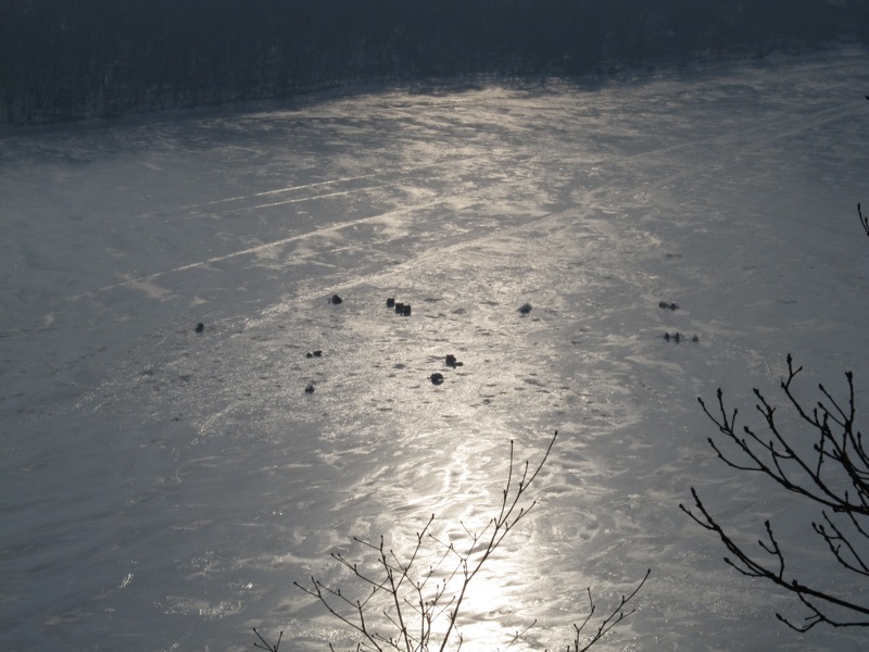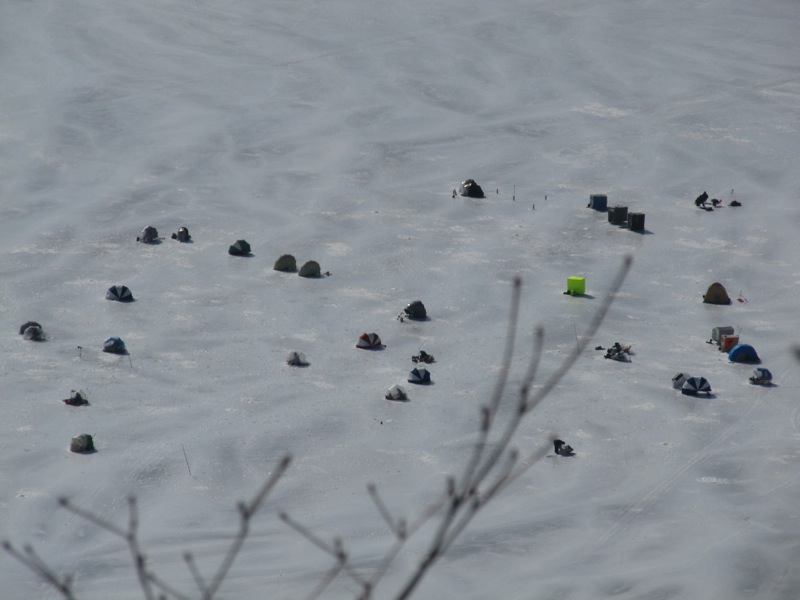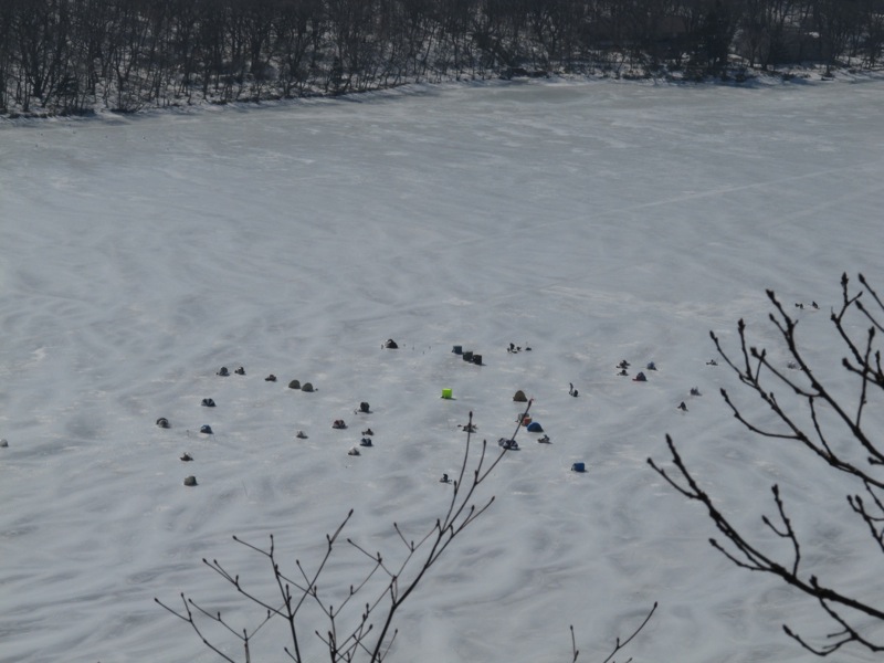 ひと登りして、眼下にはワカサギ釣りテント。きれいに撮れたかな。