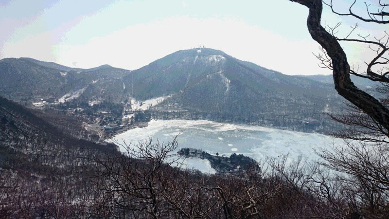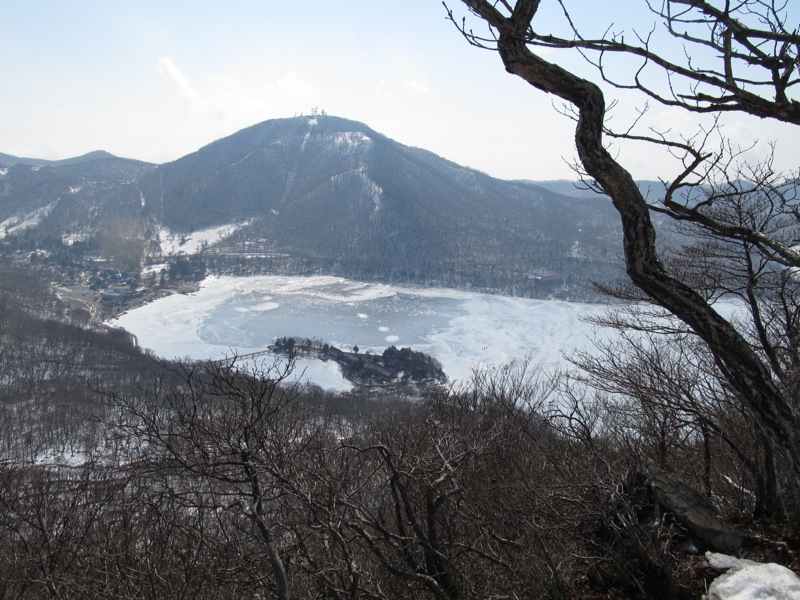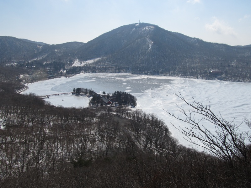 ここでは大沼の南半分が見えています。赤城神社の先に見える氷の「不穏な表情」がやはり気になります。