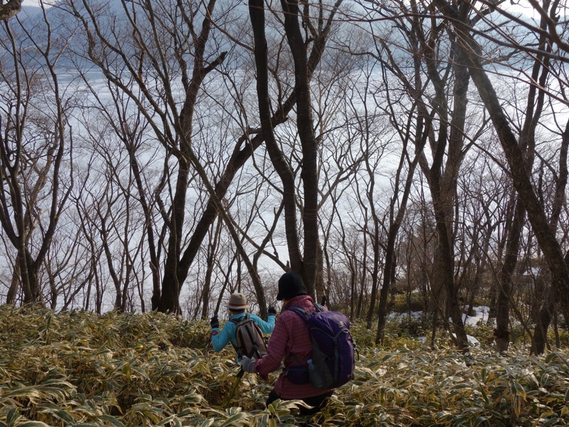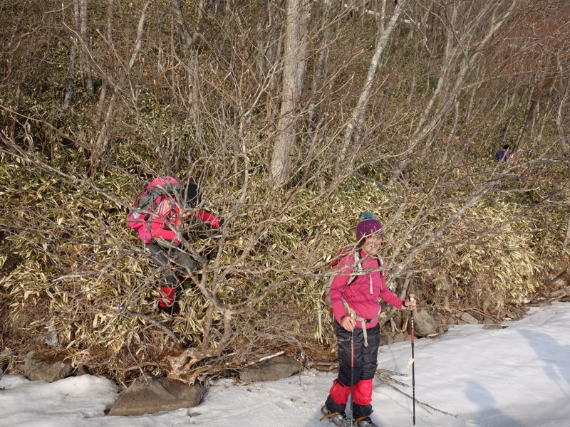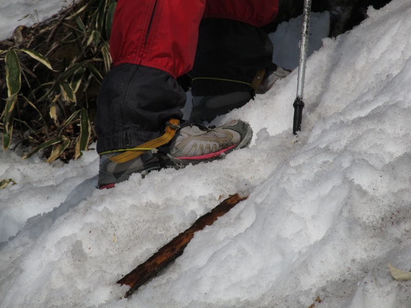 登山道に雪はあるのですが、雪の斜面を登っていくという景色ではありません。通常なら道を外れて雪面を直滑降、という気分になるのですが、とても、とても。