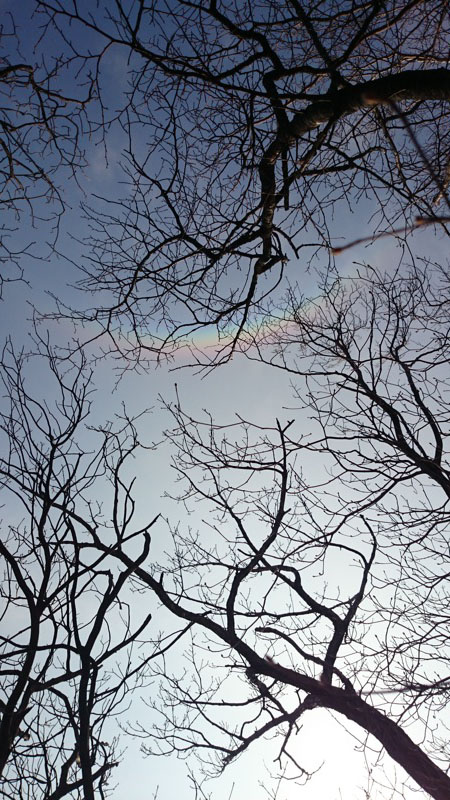 下山途中の休憩時に誰かが「虹!」と騒ぎだした。広い空のどこに虹があるのか必死に探して、やっと見つけた。