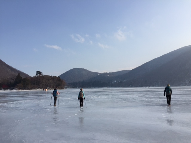 *かつて私の会にいた長野県出身者や北関東出身者は、スキーに縁のない青春時代を送っていたようです。戦後、スキー場にいるのは都会の若者で、土地の若者はスケートという時代だったのです。その後、全面凍結する湖がどんどん減りましたが、赤城山では生活排水の問題も少ないのでしょう。「全面結氷」が現在まで続いています。ワカサギ釣りがあるので冬も路線バスが走っています。いまや真冬の遊び場としてはものすごく贅沢なものとなりつつあるのではないかと思うのです。