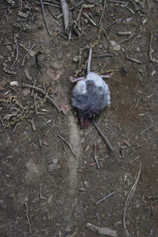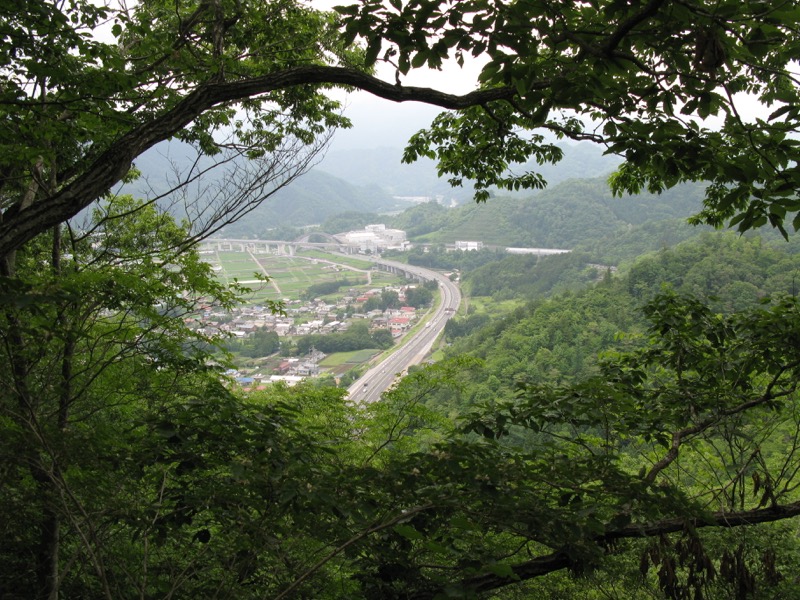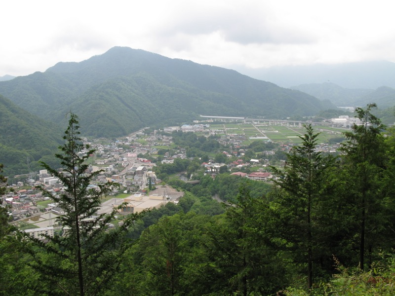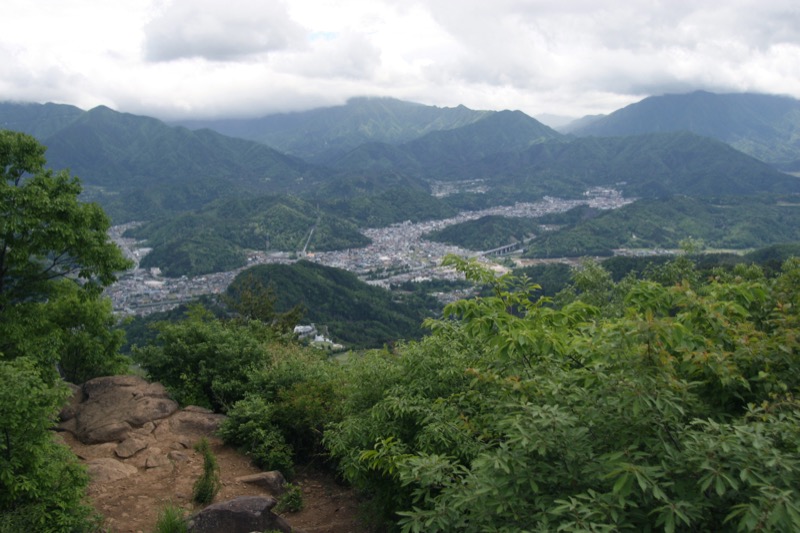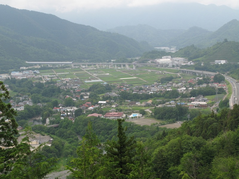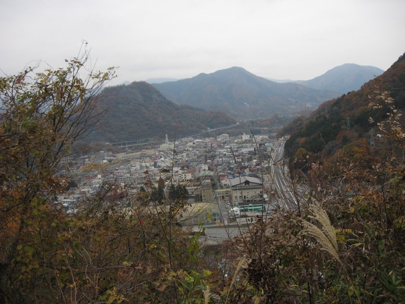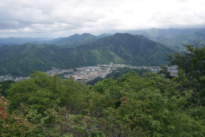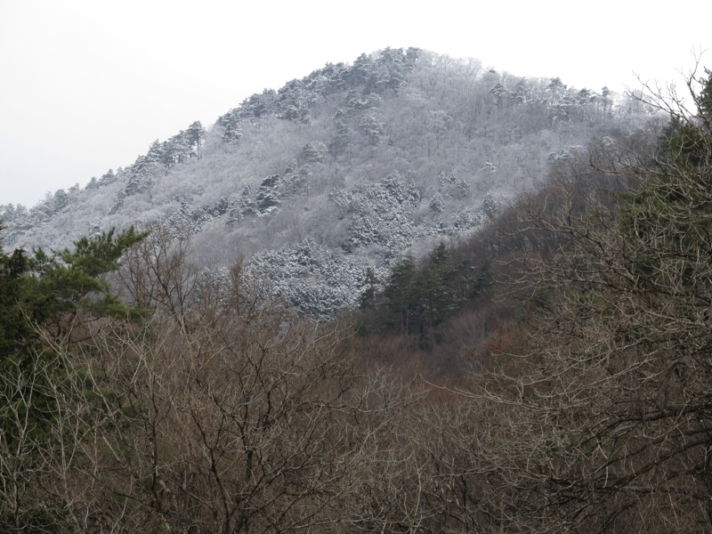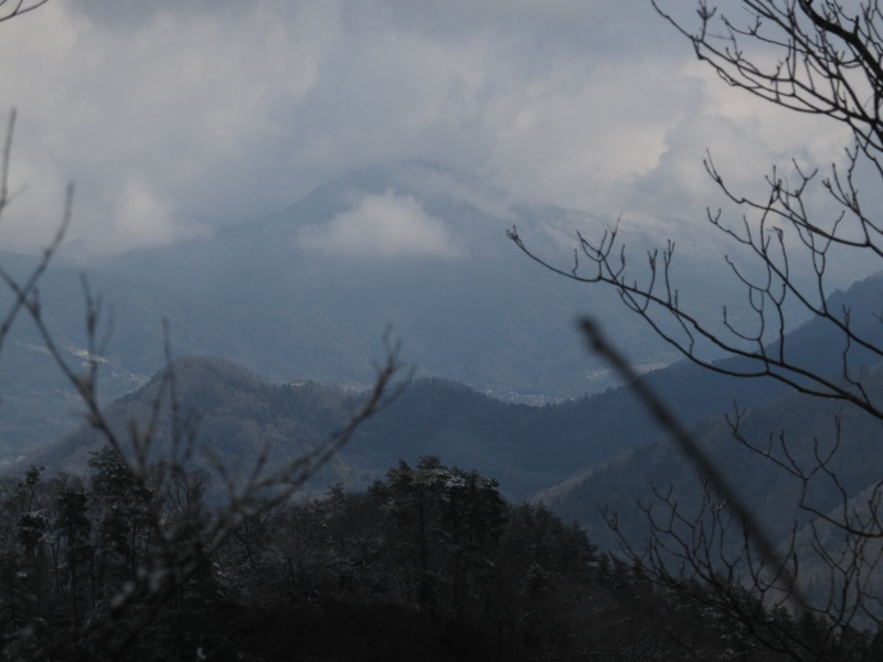 突然、山が見えました。この瞬間、この山が何なのか分かりませんでしたが、扇山(1,138m)。手前の、頭が丸い山は標高644mの菊花山。大月市街から馬立山〜九鬼山稜線へと一気に登る足がかりの山のようです。高川山から大月への長い縦走ではこの山が終始目標になりました。