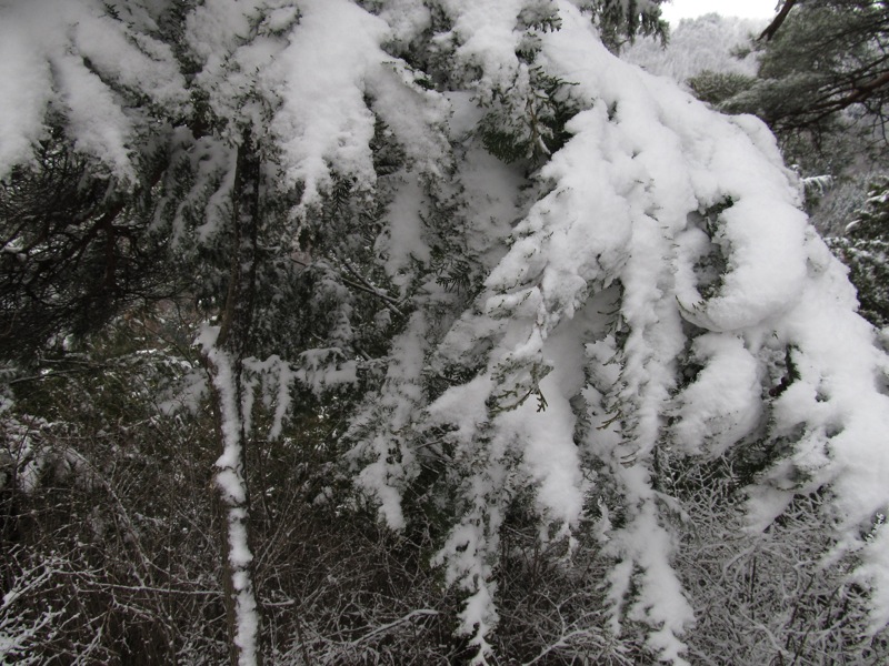 一帯はみごとな雪景色になってきました。今年は雪が少なかっただけに、突然こんな雪、しかも昨夜の雪に出会うとは。