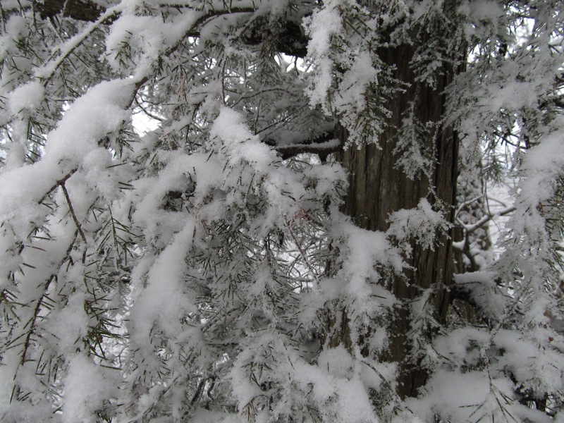 こちらは綿雪。細い枝にふわっと乗っているのは、舞い降りたときから今まで、ここには風が吹かなかったということでしょう。この綿雪が今まで残されたということに、今日の天気に対しても感謝しました。私たちにとってはとてもいい日のようでした。