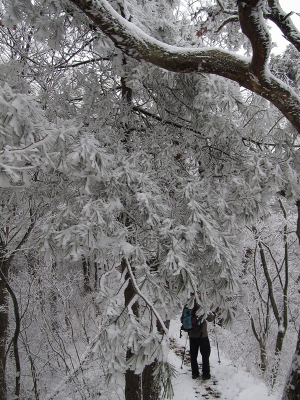 霧氷は次第に主役となり、ふんわりとした綿雪を脇役に押し下げてしまいました。